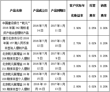 注:上述产品按照说明书中关于资产的投资类型和比例的约定进行投资,所投资非标准化债权资产已进行披露,产品运作收益超出客户实际年化收益率、托管费率及销售费率的部分将作为产品的浮动管理费用。特此公告。