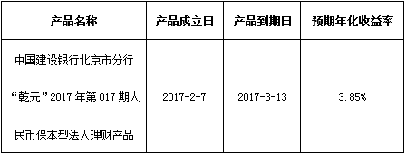 根据与投资者的约定,现将理财产品成立情况信息进行披露: