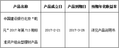 关于中国建设银行北京“乾元”2017年第713期标准资产组合型理财产品成立的公告