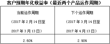下个运作周期客户预期年化收益率于2017年3月14日(含)开始执行。