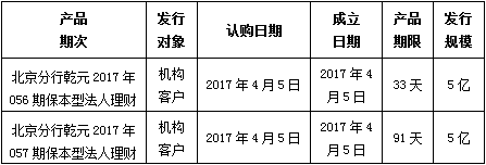 建行北京市分行理财产品发行公告2017年4月5日