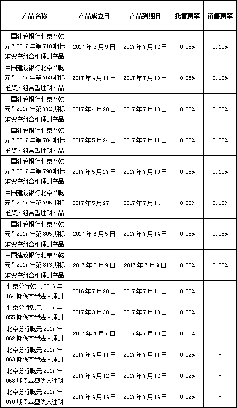 中国建设银行对公类理财产品终止及清算公告2017年7月14日