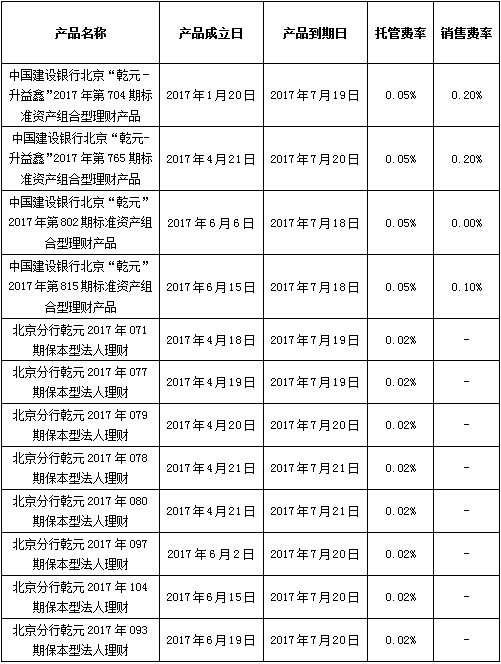 中国建设银行对公类理财产品终止及清算公告2017年7月21日