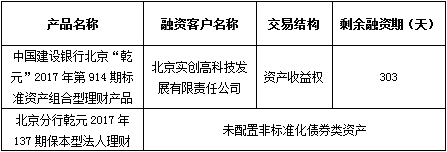 依照《中国银监会关于规范商业银行理财业务投资运作有关问题的通知》(银监发〔2013〕8号)要求,现对本期产品投资非标准化债权资产清单披露如下: