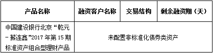 依照《中国银监会关于规范商业银行理财业务投资运作有关问题的通知》(银监发〔2013〕8号)要求,现对本期产品投资非标准化债权资产清单披露如下:
