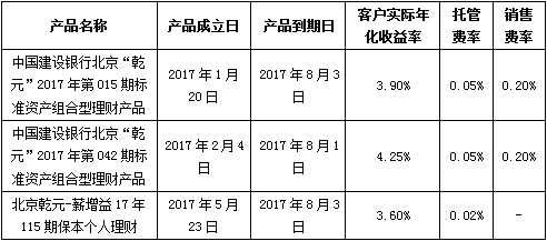 中国建设银行个人类理财产品终止及清算公告2017年8月4日