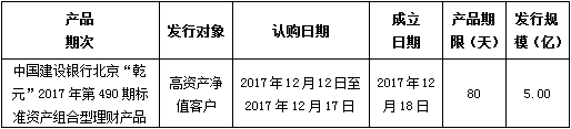 中国建设银行北京市分行定于2017年12月12日发行理财产品,现将相关发行情况公告如下: