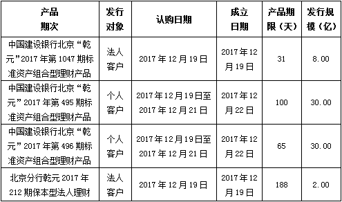 中国建设银行北京市分行定于2017年12月19日发行理财产品,现将相关发行情况公告如下:
