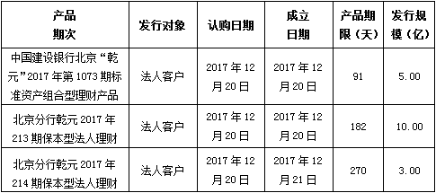 中国建设银行北京市分行定于2017年12月20日发行理财产品,现将相关发行情况公告如下: