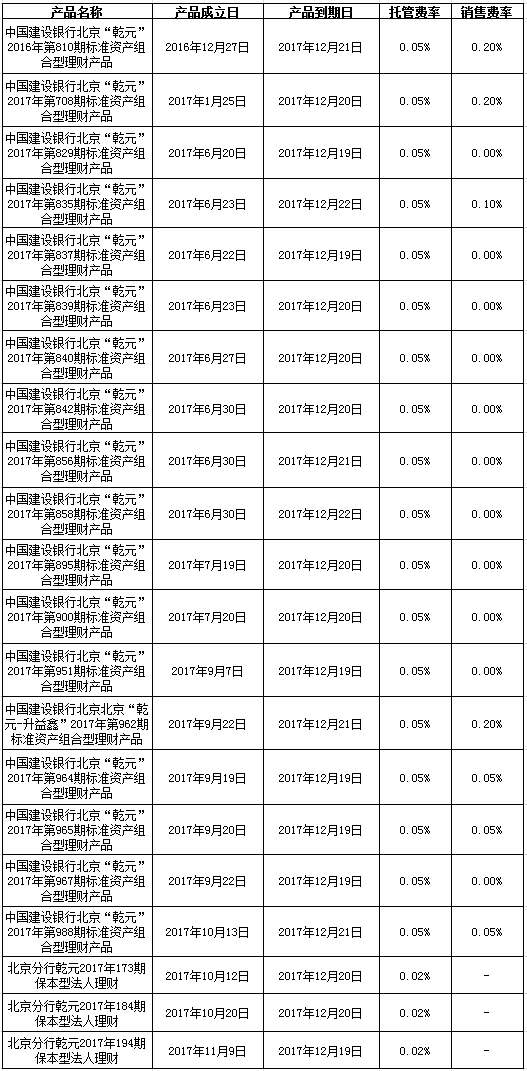 根据与投资者的约定,中国建设银行发行的下列理财产品已经到期并完成资金兑付,现将有关情况公告如下: