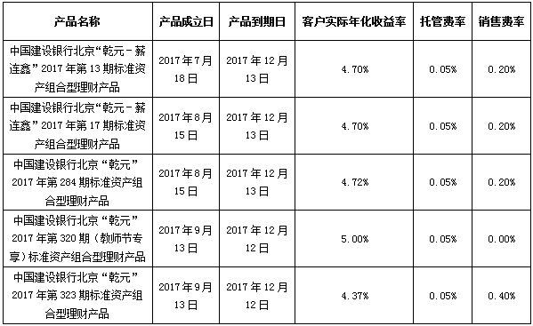 根据与投资者的约定,中国建设银行发行的下列理财产品已经到期并完成资金兑付,现将有关情况公告如下: