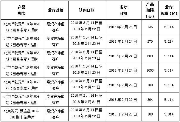 建行北京市分行理财产品发行公告2018年2月14日