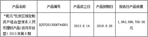 根据与投资者的约定,现将中国建设银行北京分行理财产品运行情况进行信息披露: