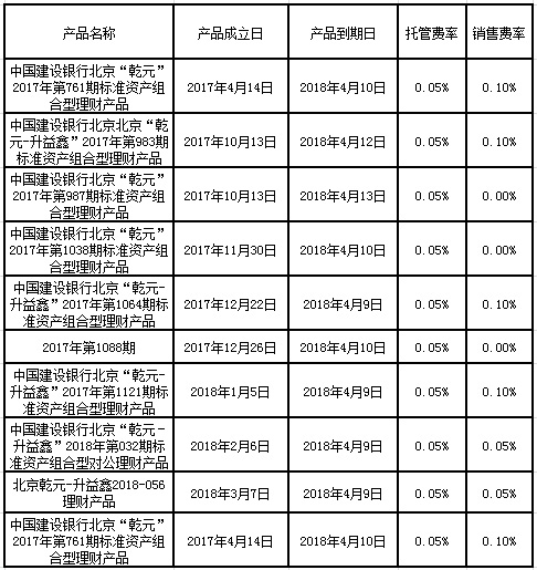 根据与投资者的约定,中国建设银行发行的下列理财产品已经到期并完成资金兑付,现将有关情况公告如下: