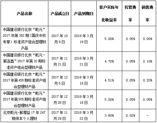 根据与投资者的约定,中国建设银行发行的下列理财产品已经到期并完成资金兑付,现将有关情况公告如下: