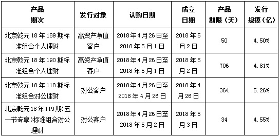 中国建设银行北京市分行定于2018年4月26日发行理财产品,现将相关发行情况公告如下: