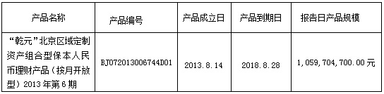 “乾元”北京区域定制资产组合型保本人民币理财产品(按月开放型)2013年第6期月度投资管理报告