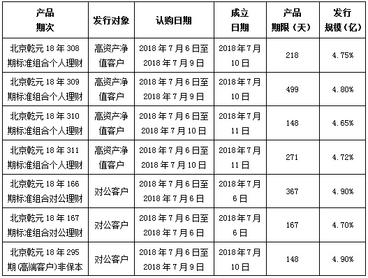 建行北京市分行理财产品发行公告2018年7月6日