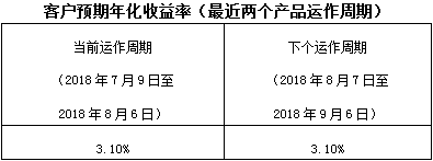 中国建设银行拟对本产品的客户预期年化收益率不进行调整,详见下表: