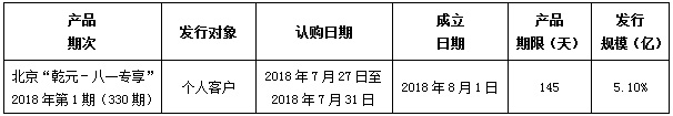 中国建设银行北京市分行定于2018年7月27日发行理财产品,现将相关发行情况公告如下: