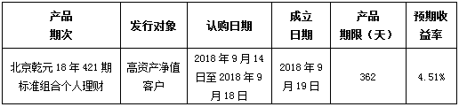 中国建设银行北京市分行定于2018年9月14日发行理财产品,现将相关发行情况公告如下: