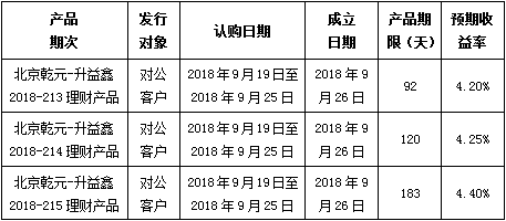 中国建设银行北京市分行定于2018年9月19日发行理财产品,现将相关发行情况公告如下: