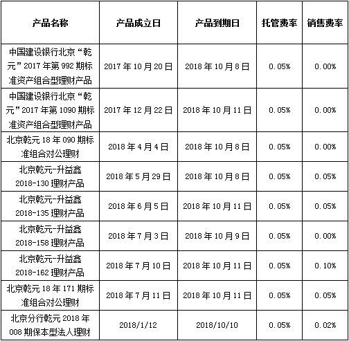 中国建设银行对公类理财产品终止及清算公告2018年10月12日