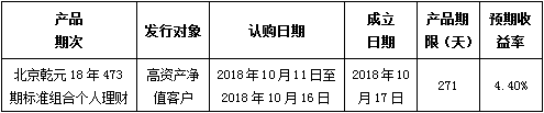 中国建设银行北京市分行定于2018年10月11日发行理财产品,现将相关发行情况公告如下: