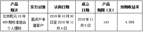 建行北京市分行理财产品发行公告2018年10月30日