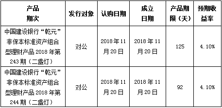 建行北京市分行理财产品发行公告2018年11月20日
