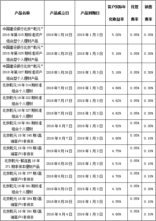 中国建设银行个人类理财产品终止及清算公告2019年1月4日