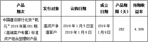 中国建设银行北京市分行定于2019年1月5日发行理财产品,现将相关发行情况公告如下: