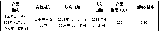 中国建设银行北京市分行定于2019年4月11日发行理财产品,现将相关发行情况公告如下: