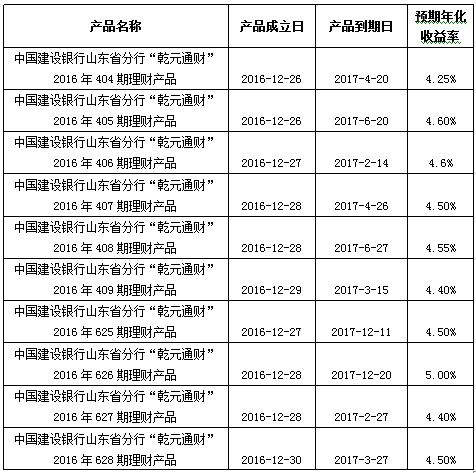 中国建设银行山东省分行“乾元通财”理财产品成立公告
