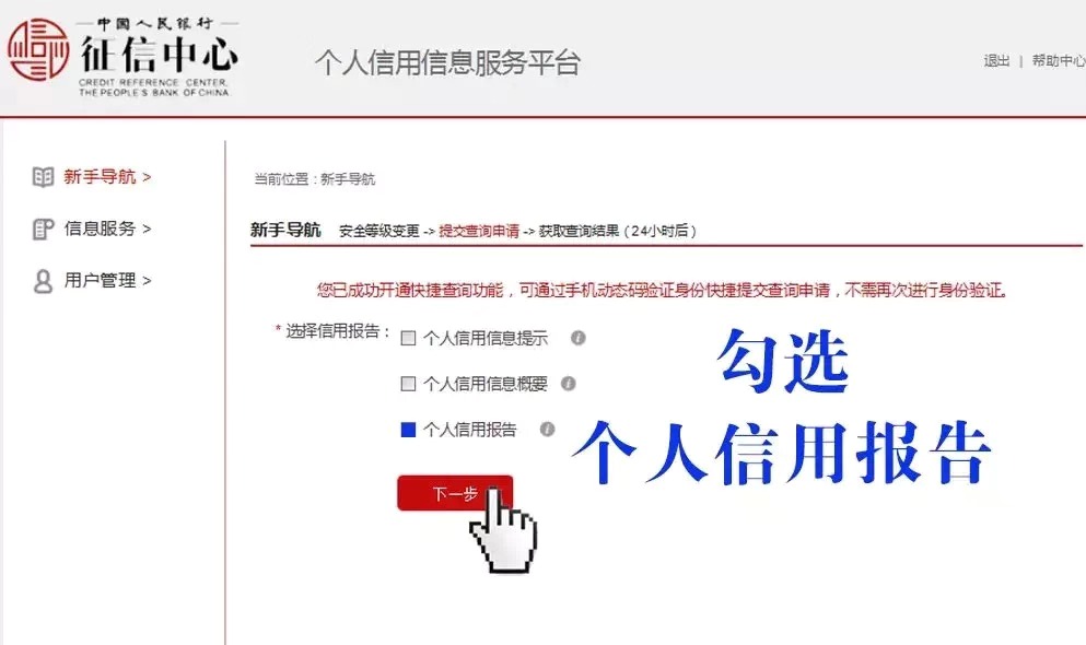 另,持有招商银行和中信银行个人网银的客户也可以通过登录银行个人网银的方式进行信用报告查询。